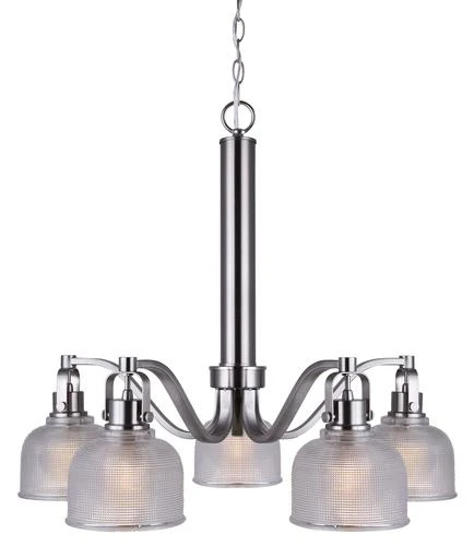 The Dynasty collection is a transitional collection that will adapt to many different interior décors. The brushed nickel finish is warm and is nicely paired with clear textured glass. The Dynasty collection has a variety of lighting options, including a five-light chandelier, two-light flush mount light, one-light pendant, three-light vanity, and a three-light fixed track.