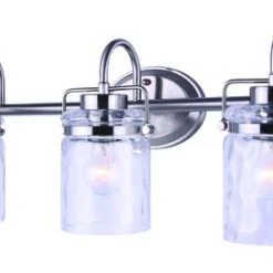 The industrial style of the Patriot Lighting Maeva collection is an excellent choice for transitional design and style. The watermark glass shades combined with a chrome finish creates a contemporary take on classic lighting. Create a feeling of harmony throughout your home with additional coordinating Maeva light fixtures (sold separately). Complete the industrial feel by adding vintage-style bulbs.