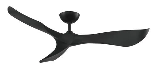 This ceiling fan is ready for indoor and outdoor usage. It comes in a sleek black finish with stylish fan blades that are powered by a reverse DC motor and six speed settings. To top it all off, it has a solid airflow output and a remote control for settings.