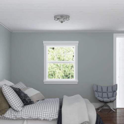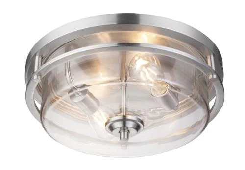 The Joska flush mount ceiling light adds enhanced style that will upgrade the look of any room. This two-light flush mount fixture has a transitional, brushed nickel finish and a clear glass diffuser.