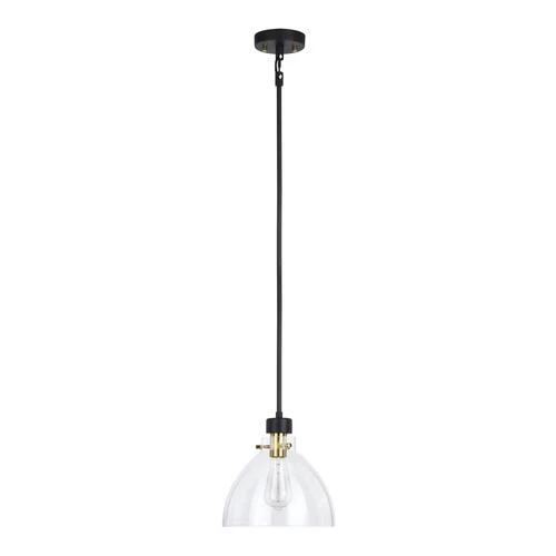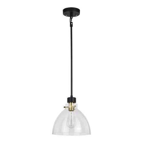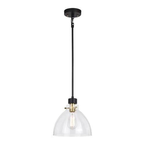 The uncomplicated appeal of the Patriot Lighting® Kenzie collection is unlike any other. The modern and trendy matte black finish with gold accents together with the clear glass updates your home’s decor instantly. Add this pendant to any kitchen, dining room, or living space for the perfect look. Don’t wait any longer, give the Kenzie collection a try and you’ll be delighted by the results.