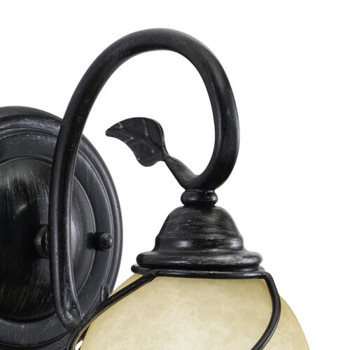 Bring a little of the outdoors inside with the Vine collection. Inspired by nature, this rustic collection features a dark oil shale finish. The amber flake glass shades are scalloped softening the overall feel. Elegantly curved arms are sprinkled with delicately crafted leaves completing the look. This full family of fixtures has something for every room in your home. Versatile reversible mounting option lets you install this fixture up or down. This wall sconce is ideal for bathrooms, hallways, stairways, and foyers.