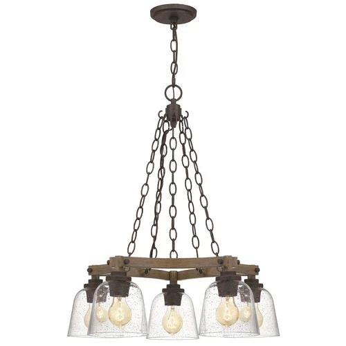 Best Sale 😀 Patriot Lighting® Elegant Home Astaria 5-Light Matte Black & Faux Wood Chandelier 🎉
