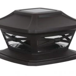 This Patriot Lighting® Crosby Bronze Solar LED Post Cap Light features an attractive profile on all four sides, creating a unique look that will enhance any deck railing or fence post. It features a durable plastic construction and a bronze finish, each with one warm white LED (4.8 lumens light output). It fits a standard four-by-four wood post as well as a six-by-six wood post without the need for additional adapters. It includes the mounting screws and is easy to install as no wiring is required. In addition, it is great for use in areas where there is no electrical supply available. It automatically turns on at dusk for up to eight hours of illumination. It is also available in a copper finish.
