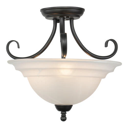 The curved arms and white alabaster glass are the key elements of this transitional collection. The well-balanced design details highlight the natural beauty of the materials and are perfectly combined to create a sophisticated, elegant statement. The Babylon collection is offered in multiple finishes. Medium screw base lamping provides maximum light output, and flexibility in bulb choice. This versatile fixture can be installed two ways; mount as a semi flush ceiling fixture or use the chain to mount as a pendant.