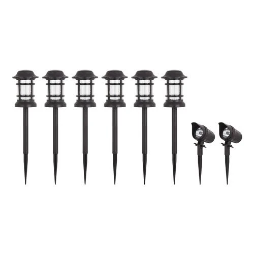 This Patriot Lighting® Loretto low-voltage LED path light set includes six landscape path lights, two spot lights, one 48-watt transformer with a photocell, eight stakes, and one 50-foot cord. It is energy efficient and features a clear seeded glass lens. The Loretto path lights offers a stylish, industrial-inspired look. It can be installed almost anywhere within reach of a power supply and is perfect for lining your pathway or garden when installed in multiples. It features a bronze finish that adds a variety of outdoor decor styles. The light provides an attractive touch for any exterior. At the same time, it also additionally offers nighttime security for your home.