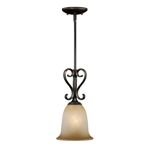 The Patriot Lighting® Mavis 7.125″ mini pendant features the hand forged iron twisted into graceful curves in oil brushed bronze with gold accent and etched champagne glass shades. Both are well integrated to celebrate the beauty of light with their soft illumination.