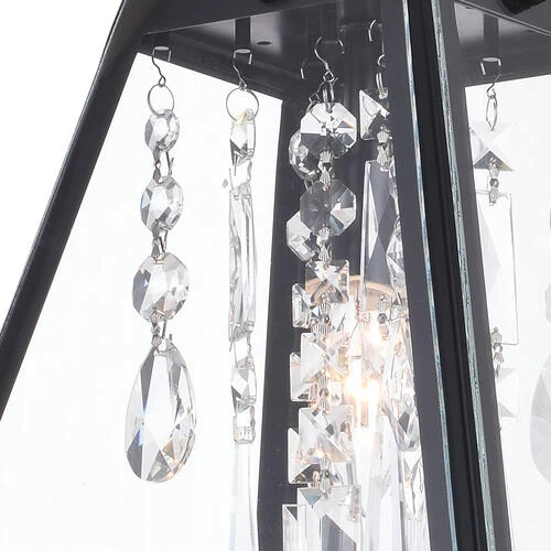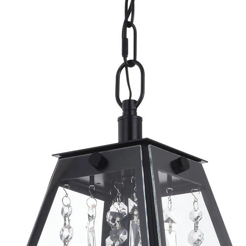 A touch of glam balanced with strong edgy geometric lines bring the Tremont collection¡¦s urban loft aesthetic into your space. Crystal strands add a glamourous tone to the tapered clear glass and dark metal surround. Removable glass panels allow you to change the look and eliminate the need to clean glass. Combine that with vintage Edison style filament bulbs to complete the look. Install this mini pendant individually or in a group; ideal for kitchens, dining areas, or bar areas.