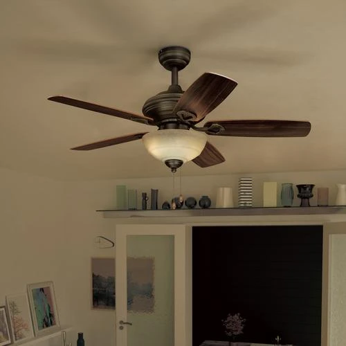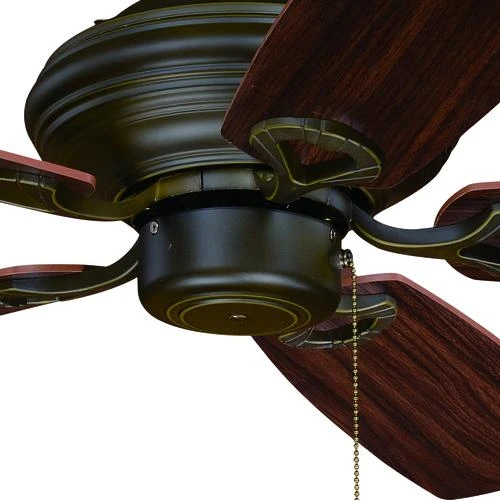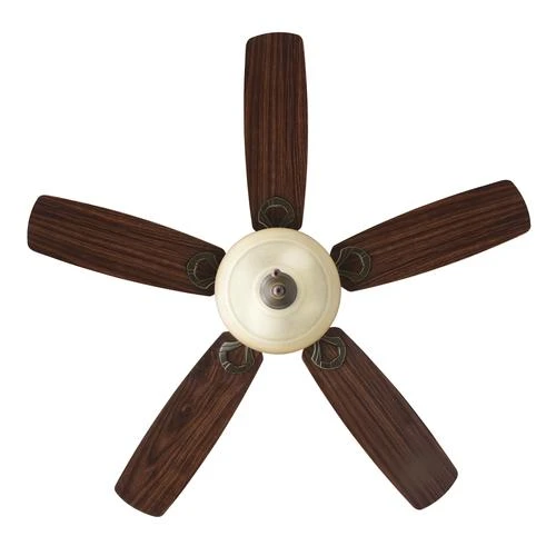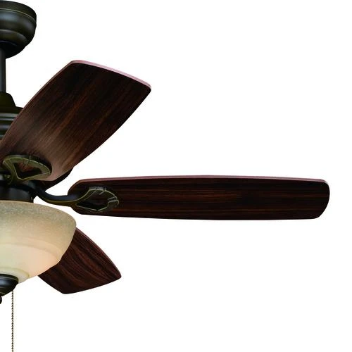 The Patriot Lighting Vienna II 42-inch ceiling fan is full of simple, elegant beauty and has a traditional style that matches almost any room. It has five reversible blades in walnut and distressed pine. An oil-rubbed bronze finish with a creme cognac glass shade complete this fixture’s lovely look. The reversible, whisper-quiet three-speed motor provides upward and downward airflow for desired air circulation and year-round comfort.