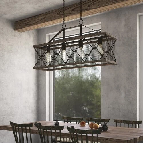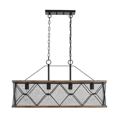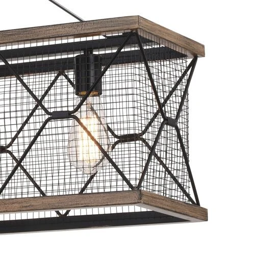 Add remarkable dimension to your kitchen or living room with this Patriot Lighting® Elegant Home Bodhi island light. With a strong silhouette made of two wood-finish rings adorned in heavy-wire black mesh, this island light rocks the retro look. This industrial-chic light also includes four vintage-style light bulbs to enhance your home with charming illumination. Plus, you can customize the hanging height of the light with an included matching 48-inch chain.