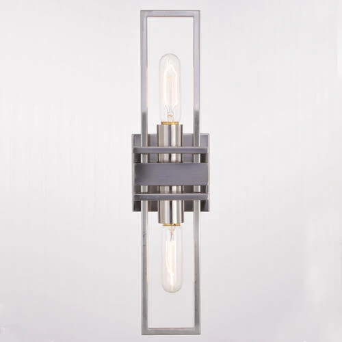 A bold open frame creates geometric statement in the Marquis collection. Elongated structures in a satin nickel or black finish offer two distinct options that will bring a contemporary feel to any space. Combine that with vintage Edison style filament bulbs to complete the look. This wall sconce is ideal for bathrooms, hallways, stairways, foyers, and more.
