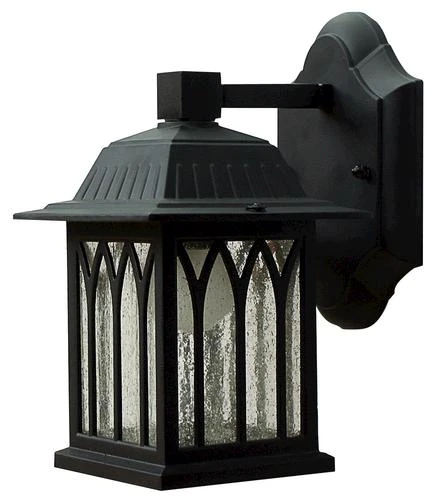 The Sante Fe Black Outdoor Wall Light is demure but elegant and features seeded glass. For a classic look that will stay in-style through the years, look to the Santa Fe collection. Not only will this light fixture give you all the light you need, it will complete the look of any style home. It requires a 100-Watt type A bulb.