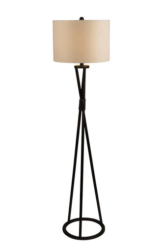 This simple floor lamp design features modern updates for today’s styles. Crafted from metal and finished in black, the base features tripod styling with a unique modern twist.Topped with a white hardback shade, this lamp is the perfect update for your home.