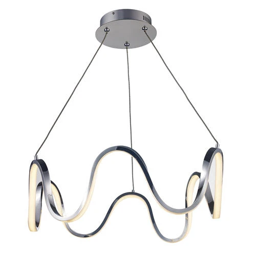 This LED island pendant features a luxurious chrome finish a spiral lustrous design. This fixture features integrated LED and is adjustable in length. This is the perfect light accent for any kitchen, living room, dining room and entry way.