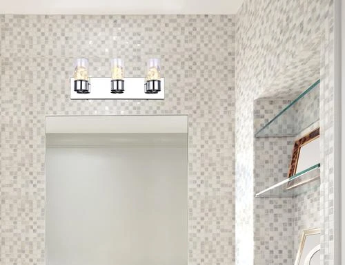 Create a relaxing atmosphere under the glow of the Elegant Home Lilika three-light vanity light as you escape reality and enjoy a warm bubble bath. Lilika comes in a classic chrome finish with clear glass shades that contain elegant crystals.