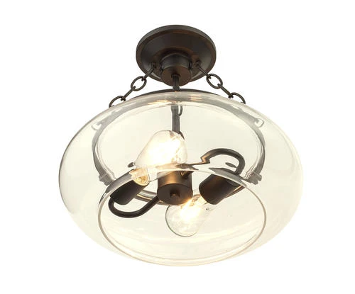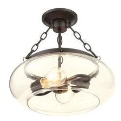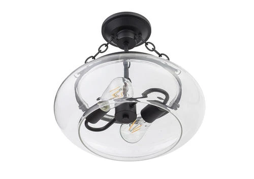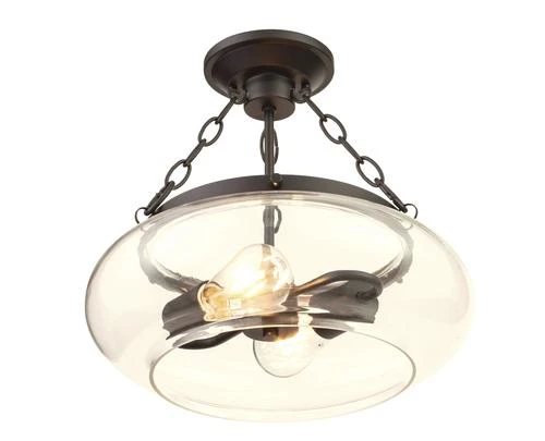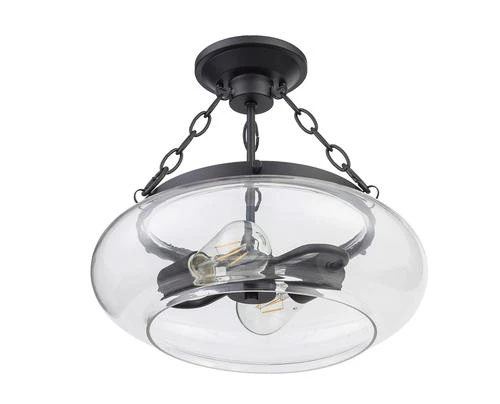 The Harlee two-light semi-flush mount is a perfect design for entry halls and kitchens. It has clear glass for maximum light output and accent chains for an enhanced look.