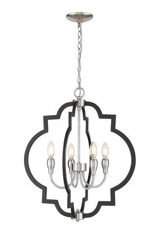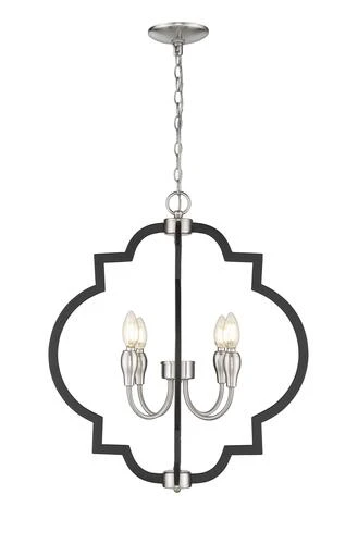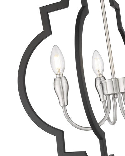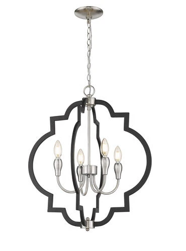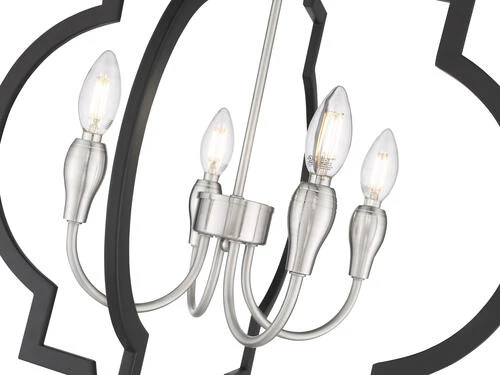 - 4-light pendant in a whimsical black iron frame with brushed nickel finishings