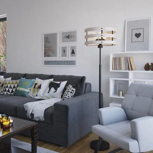 A farmhouse flair is what you will say about this Patriot Lighting® Wolfsburg floor lamp. The matte black and distressed wood finish are combined flawlessly to give you a spectacular lamp. The included vintage bulb will add that warmth that is complimentary to the wood finish.