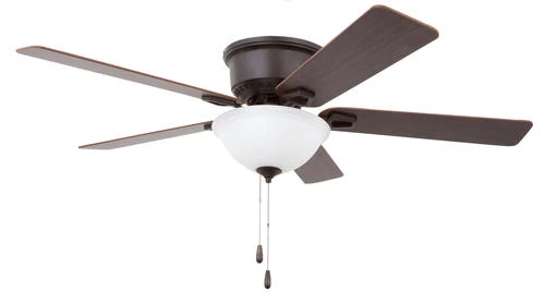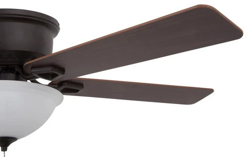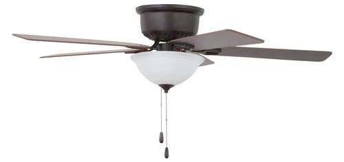The Patriot Lighting Alston 52-inch ceiling fan features light frosted glass. The Alston’s styling allows this fan to be used in any room of the house and coordinates seamlessly with other decor.