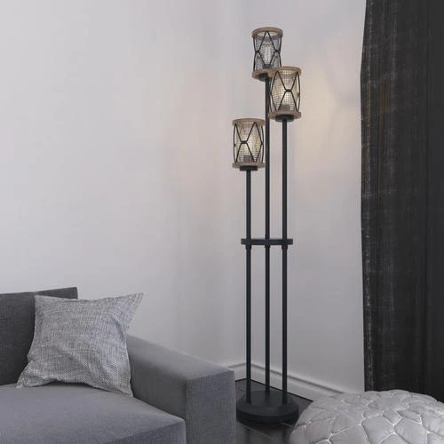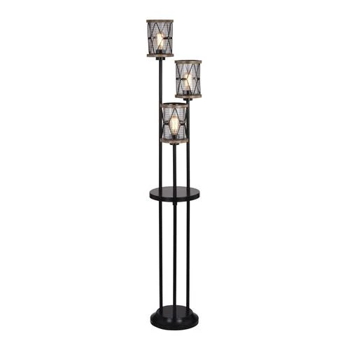 An soft industrial take on a floor lamp is the Patriot Lighting® Bodhi floor lamp. The multi level light sources in black and replica wood finishes adds interest and intrigue to this floor lamp. But when you add a clear glass shade surrounded by a wire cage you are making a bold statement. The included vintage bulb will soften the otherwise industrial styled light.