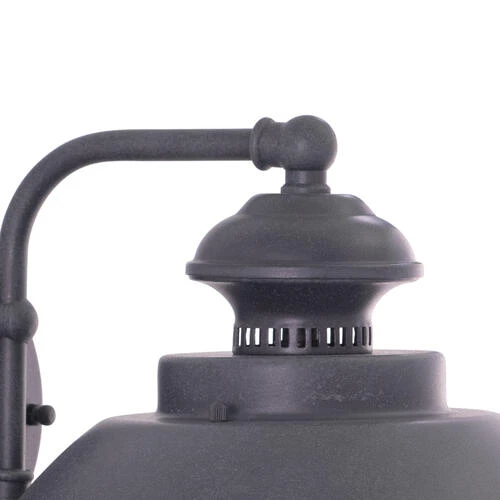 - Textured gray finish with clear seeded glass