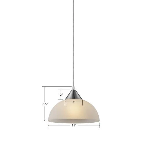 - Brushed nickel finish with white shade