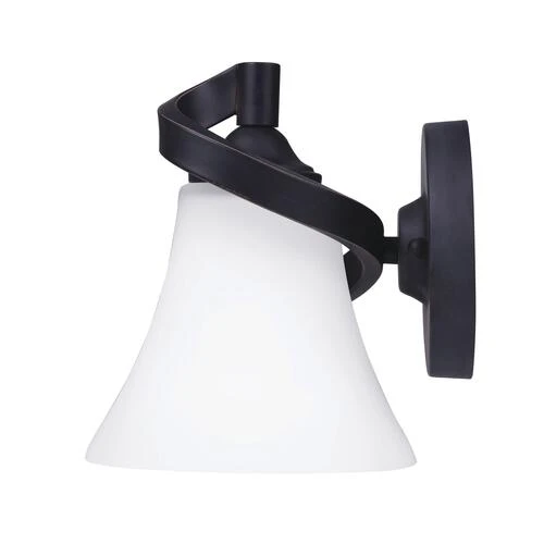 Add a twist to your bathroom lighting with the Dee single vanity light. Dee stays traditional with its oval backplate and curvaceous arms, while adding a transitional touch with the use of a beautiful seeded glass shade and a rubbed antique bronze finish.