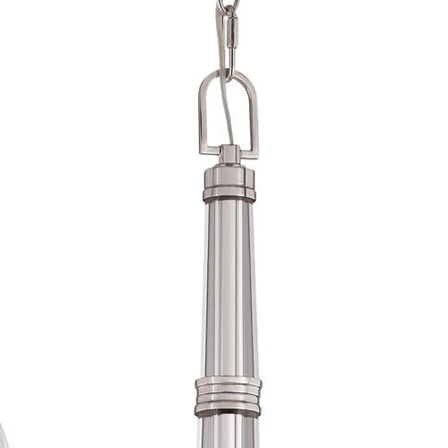 The Hoyne collection offers a contemporary update to a traditional style. Candelabra lamping finished in sleek polished nickel accented with delicate crystal drops give the Hoyne its dramatic appeal. The central column and candle holders are also ensconced in sparkling clear crystal. This stunning chandelier is ideal for kitchens, dining areas, and foyers.