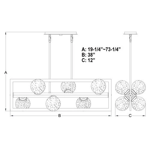 The Bridgeview collection of pendant lights was developed with design elements of rustic, industrial and mid-century modern decor-perfect for today’s on-trend spaces. The clean straight lines of this linear chandelier frame the clear seeded glass globes which are artfully arranged along the wood-toned central support. This versatile hanging ceiling light is suitable for many spaces in your home, ideal for kitchen island lighting, pool table light fixtures, and linear dining room tables.