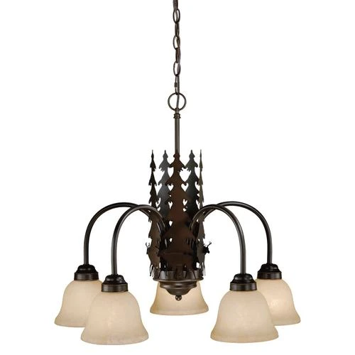 This is a charming deer inspired Patriot Lighting® Bryce chandelier. The burnished bronze finish and amber flake glass make this rustic piece a true gem. The deer silhouettes allow this to be a piece that is sure to impress with its striking and interesting aura.