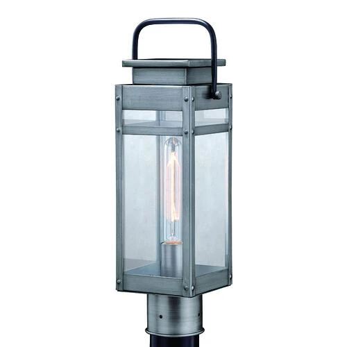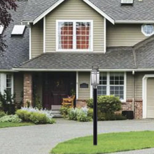This delightful Patriot Lighting® Clermont 18.43″ Brushed Pewter And Textured Black Outdoor Post Light is the right fit for your outdoors. The Brushed Pewter And Textured Black finish and clear glass create a truly interesting look. The soft yet impressive look makes this light the right choice. The detail on the top is unique and creates a subtly interesting look. Not a common design but definitely a desirable one.