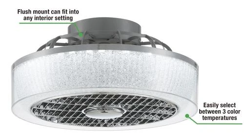 This indoor flush mount ceiling fan comes with an elegant yet sleek gray finish complemented with a clear acrylic shade. This fixture can sit into any interior setting and it’s equipped with a stylish, color-changing integrated LED light along with a remote control for customization.