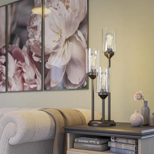 The Lance 3 Lt 28.37″ Table Lamp illuminates. The clear seeded glass adds style and charisma to your living area, this collection features a matching floor lamp to complete your look.