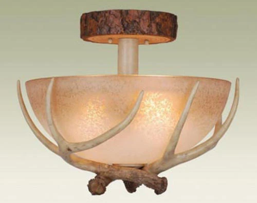 The captivating antler look of the Patriot Lighting® Lodge collection is the epitome of the mystical animal. The rustic outdoors is now available indoors with this three-light semi-flush mount light. This wild look is warm and inviting yet interesting and stylish with its Noachian stone finish and French scavo glass. Ideal for any room in your home, making a choice will be easy and you’ll fall in love with the essence it creates.