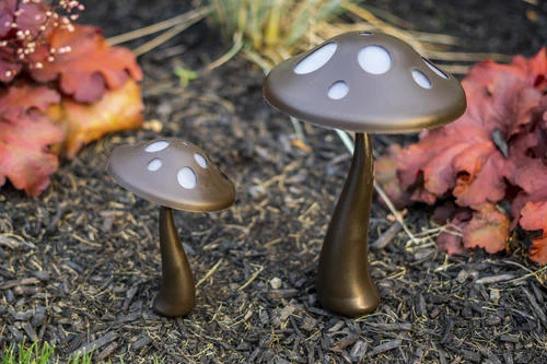 - Large mushroom light dimensions: actual depth = 6-7/8; actual height without stake = 9-7/8; actual width = 6-7/8